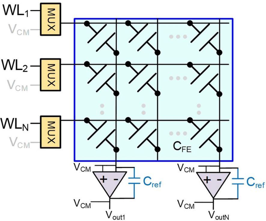 Vor einigen Jahren begannen Forscher am Georgia Institute of Technology mit der Erforschung der Möglichkeit, ferroelektrische Kondensatoren (FeCAPs) zur Speicherung von Gewichten in analogen CiM-Anwendungen zu verwenden. FeCAPs haben zwei große Vorteile gegenüber resistiven Speichern: (1) die Schaltkreise haben eine deutlich verbesserte Energieeffizienz und (2) es werden keine Selektorvorrichtungen benötigt, da keine Kriechströme durch die Schaltkreise fließen.