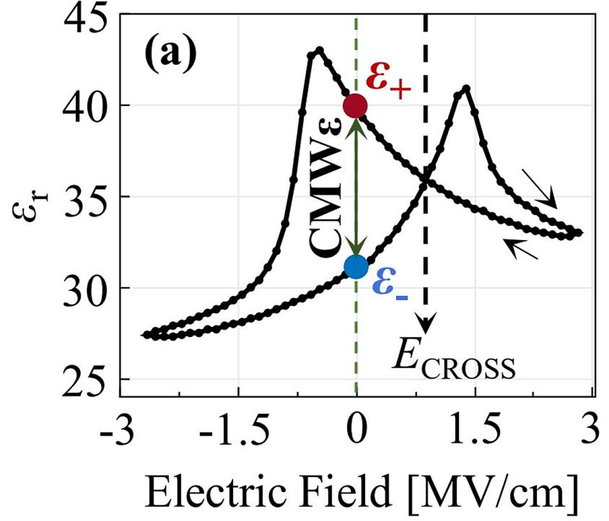 Die Forscher am Georgia Institute of Technology und am imec verfolgen einen anderen Ansatz. Sie gehen von einem anderen Konzept des Speicherfensters aus. Anstatt den Unterschied zwischen P+ und P- auszunutzen, verwenden sie das Konzept eines kapazitiven Speicherfensters. Dieses kapazitive Speicherfenster ist die Differenz zwischen den kapazitiven Zuständen der FeCAP, wenn sie sich entweder im P+ oder im P- Zustand befindet. Es kann aus C-V-Messungen abgeleitet werden, die die nichtlineare kapazitive Reaktion (oder relative Permittivität (eR)) des ferroelektrischen Materials auf ein angelegtes elektrisches Feld aufzeichnen.